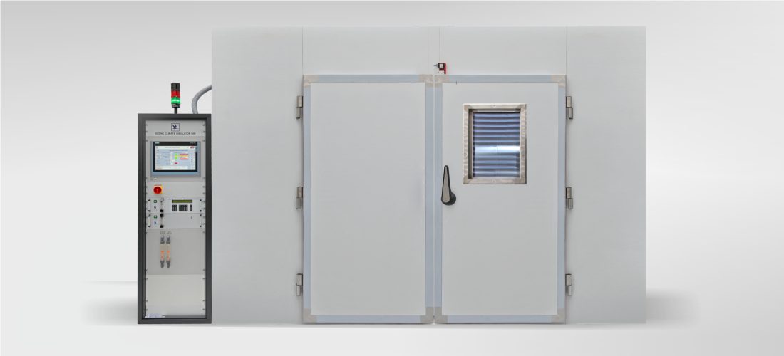 The chambers are ready to walk in and equipped with one or more doors or gates for loading machinery, equipment, products such as tires and other bulky goods. Inside the chamber, APR treatments can be carried out with ozone (anticavitation processing) on an intrinsically safe basis. Loading can be carried out: discretely, batch-wise, semi-continuously or continuously with appropriate curtain design. To ensure ozone safety, ozone catalysts as well as appropriate ozone sensors are used.